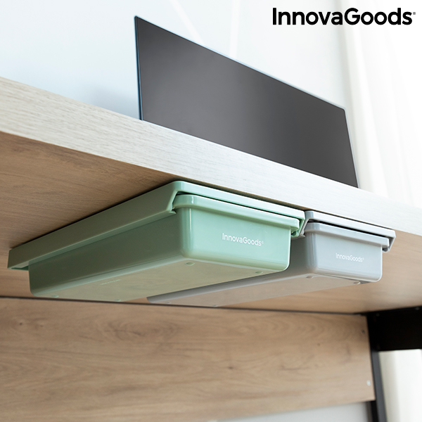 Izviren in nevsiljiv komplet lepilnih predalov za mize, ki zagotavljajo dodaten prostor za shranjevanje v neuporabljenih prostorih, da bodo stvari urejene in organizirane. Vključenih je 10 dvostranskih kakovostnih lepil, ki zagotavljajo popolno pritrditev in trdno držanje uporabljenih površin. Zaradi njihove prenosne, kompaktne in večpozicijske zasnove so izjemno vsestranski in prilagodljivi, saj jih je mogoče enostavno namestiti, kjer koli je to potrebno (brez potrebe po montaži ali orodju). Čeprav se v glavnem uporabljajo za pisalne mize in delovne prostore, so zelo koristne tudi za police, toaletne mize, omare itd. Idealne so za shranjevanje kakršnih koli majhnih predmetov, kot so pisala, svinčniki, očala, lupe, slušalke, USB ključki, beležke , škarje, glavniki, nakit, izdelki za ličenje, lepotna orodja itd.