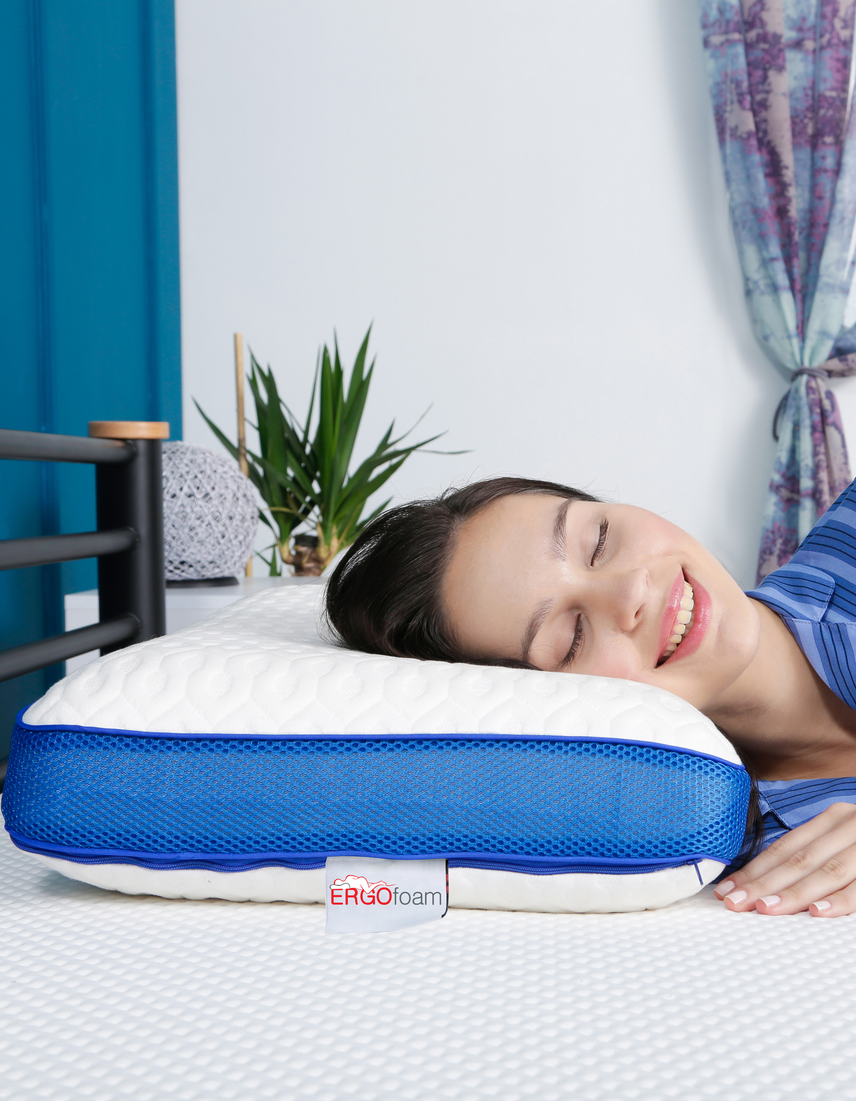 Posebna oblika vzglavnika ohranja pravilno lego hrbtenice med spanjem, zato boste vstajali bistveno bolj naspani in spočiti.