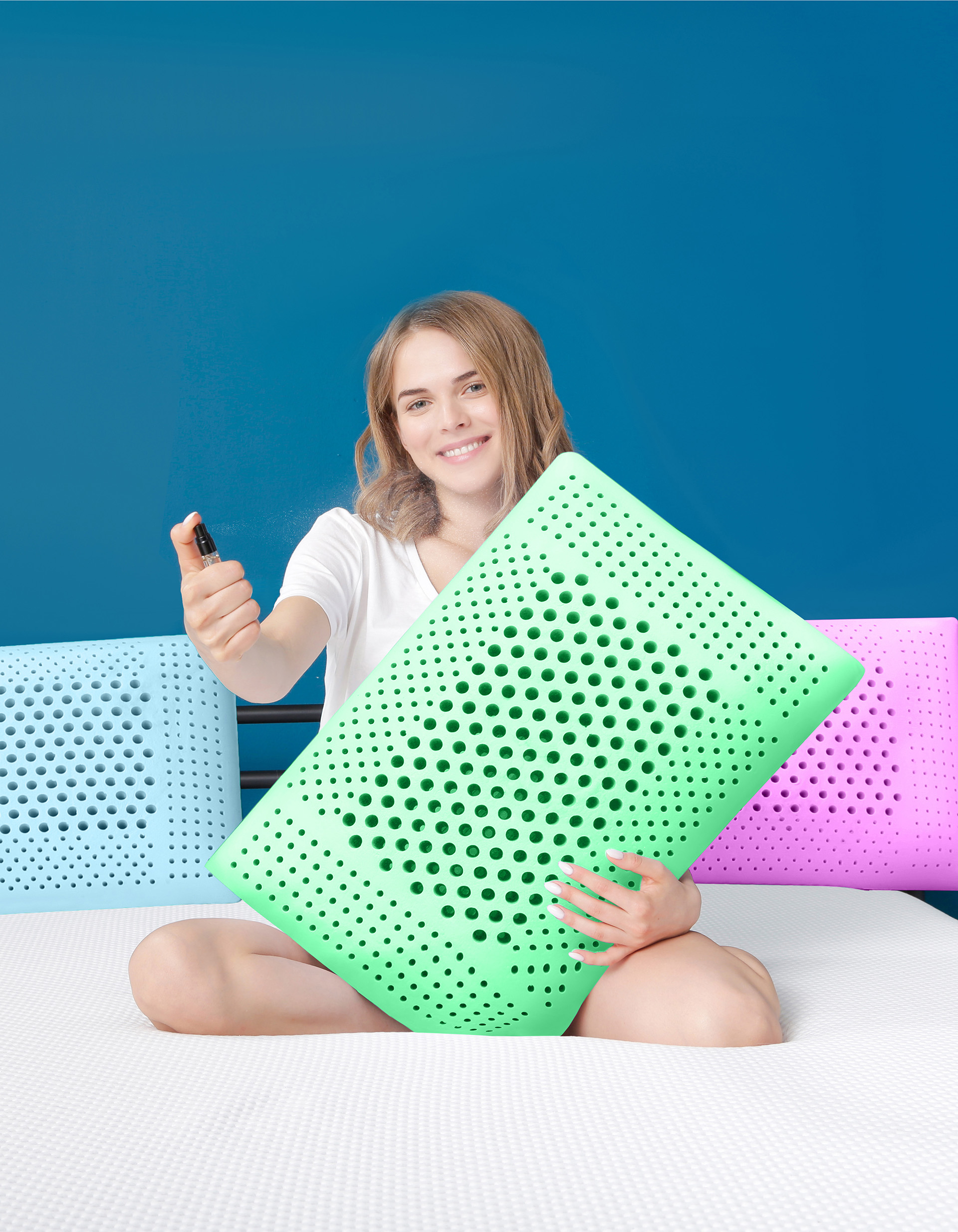 Najlepše in tudi najbolj zdravo je spati na sveži, suhi postelji, zato je izjemno pomembno, da vaš vzglavnik med spanjem ostaja suh. S tem namenom ima vzglavnik Aroma Therapy perforirano strukturo, natančneje, številne luknjice po celi površini. Na sredini, kjer se najbolj potimo, so luknjice večje, ob strani, kjer je manj kontakta s telesom, pa manj. Luknjice skrbijo, da se vzglavnik nenehno prezračuje – vsa vlaga, ki jo oddajate med spanjem, se sprošča v zrak, v vzglavnik pa prihaja suh, svež zrak.
